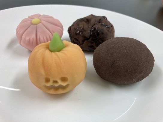 練り切り体験ではこの季節らしい秋桜、ハロウィンのジャックオランタンに挑戦!