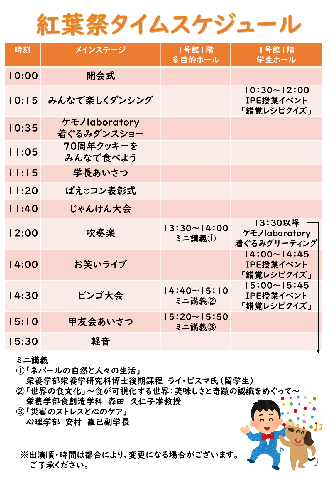 第56回 甲子園大学紅葉祭のタイムスケジュールをお知らせします