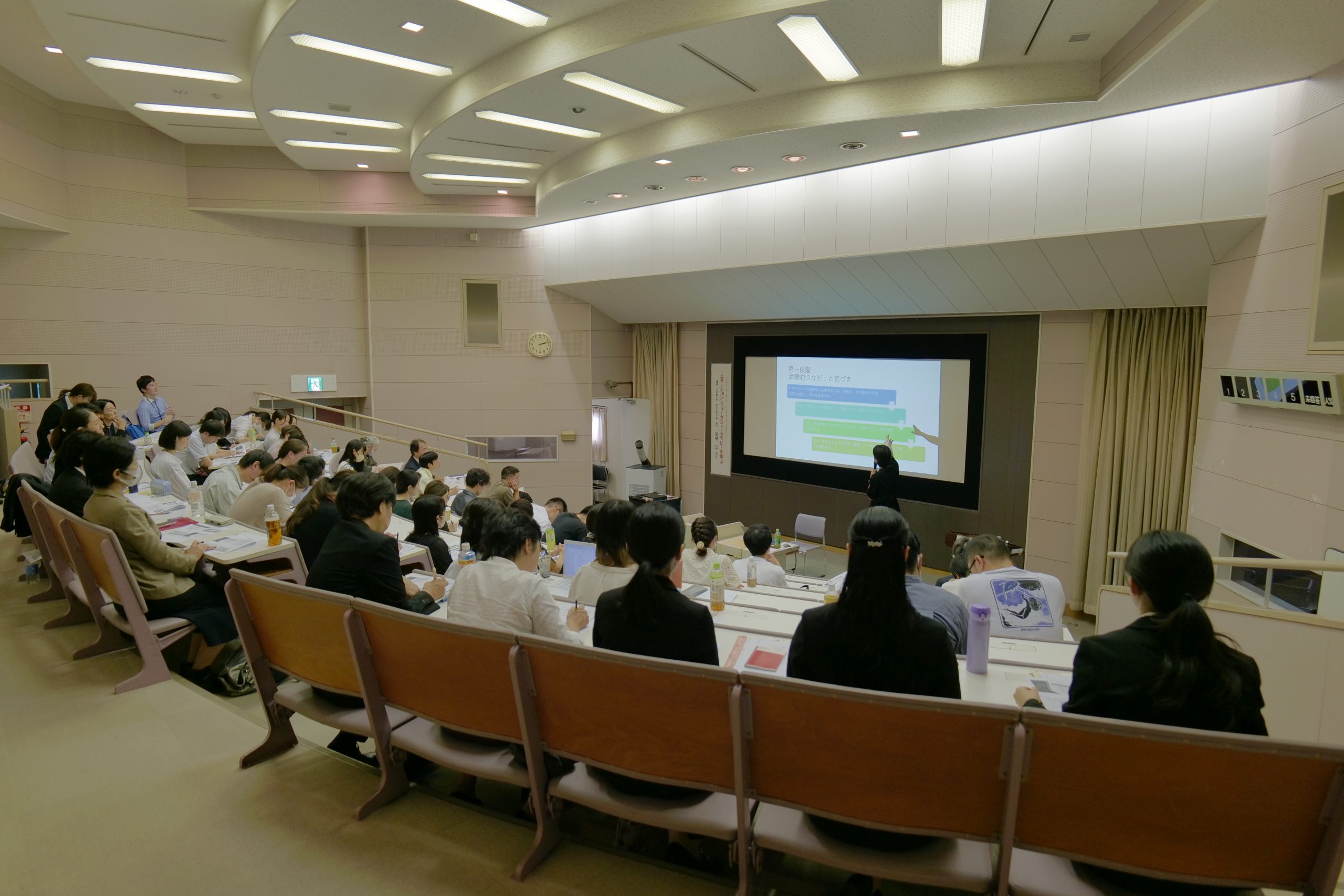 参加者は本学大学院生、研究生、外部の専門家を含め55名で、感情の探索と介入という心理療法の本質を突いた講演と、難事例の提供への多角的な討論が行われ、会場は熱気に包まれました。