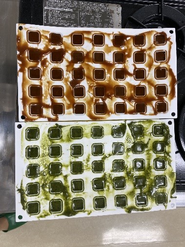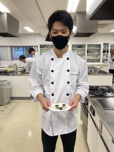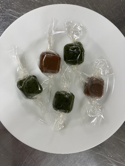 「製菓入門」を履修している食創造学科の学生8名がキャラメルを作りました。太陽のキャラメルの尾﨑太一先生をお招きし、キャラメル作りの実習を行いました。今回作ったキャラメルは、塩生キャラメル、宇治抹茶生キャラメルです。受講生が皆で協力して、無事に2種類のキャラメルができあがりました。キャラメルのラッピングの方法も教えていただき、立派な作品ができあがりました。できあがったキャラメルは各自で持ち帰りました。おいしくいただいた事と思います。キャラメルに合うフレーバーティーもいただき、受講生はキャラメル作りを楽しく学ぶ事ができました。