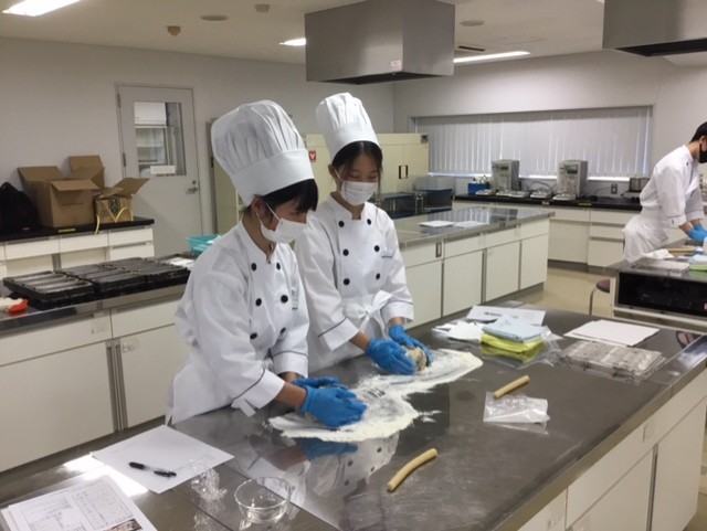 「製菓入門」を履修している食創造学科の学生7名がクリスマスのお菓子であるシュトーレンを作りました。