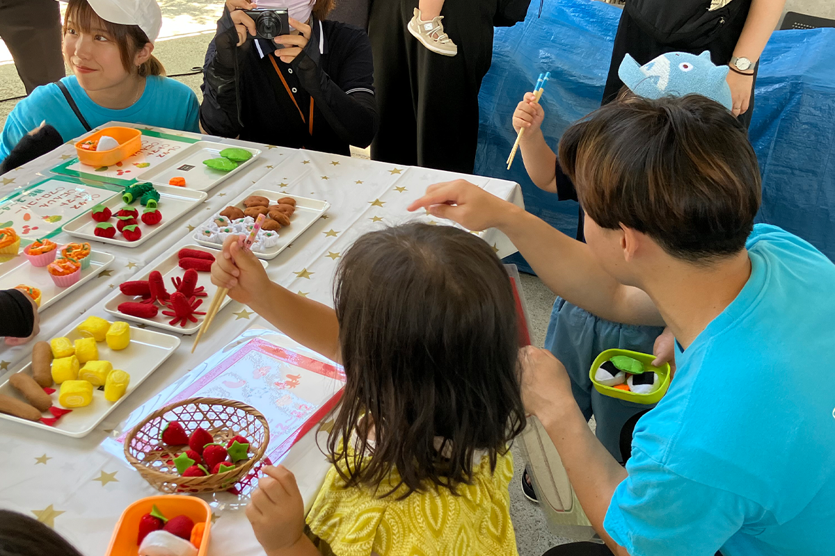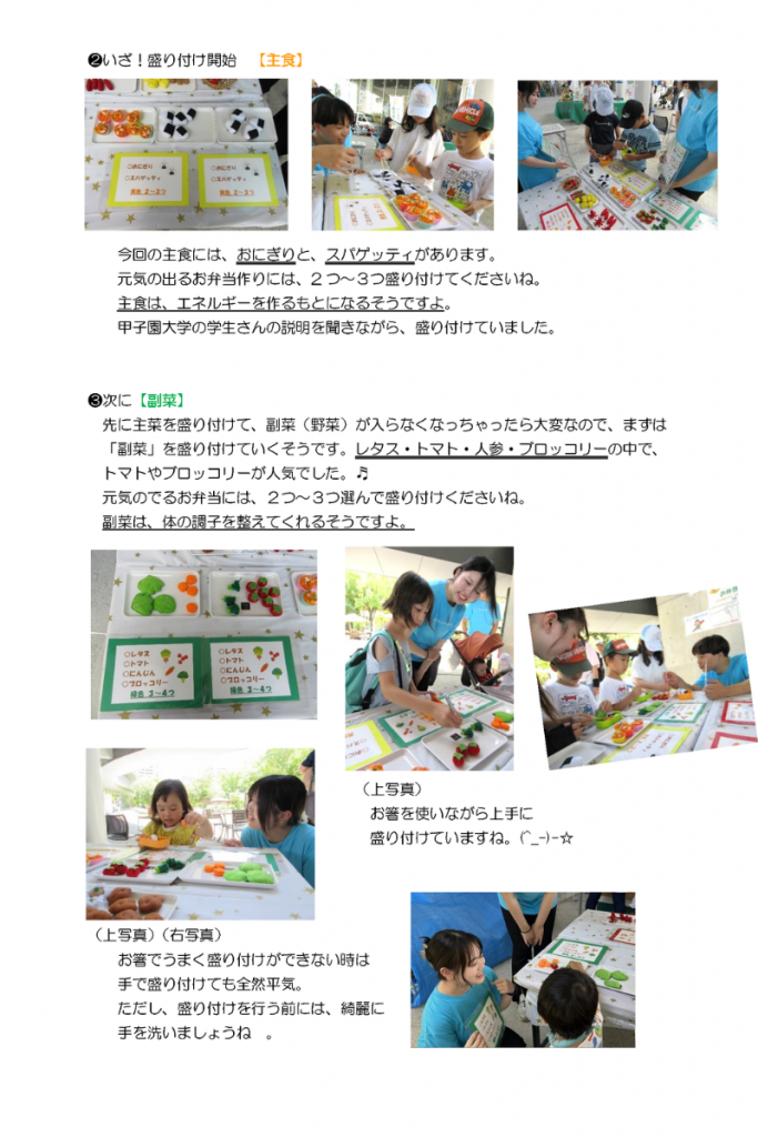 本学の食育実践コースの学生を中心に計8名が子ども達への食育啓発をお手伝いさせていただきました。
