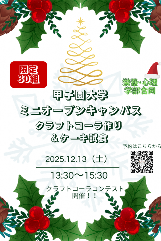 12/13(土)13:30~15:30にミニオープンキャンパスクリスマスver.を開催します!