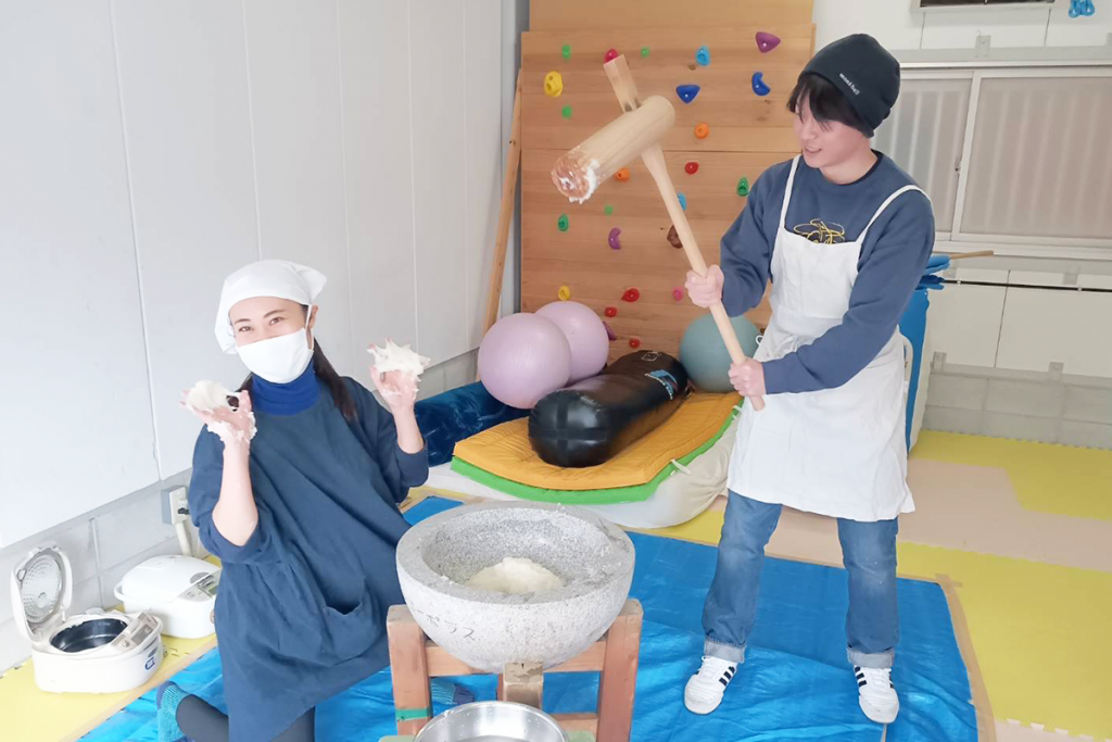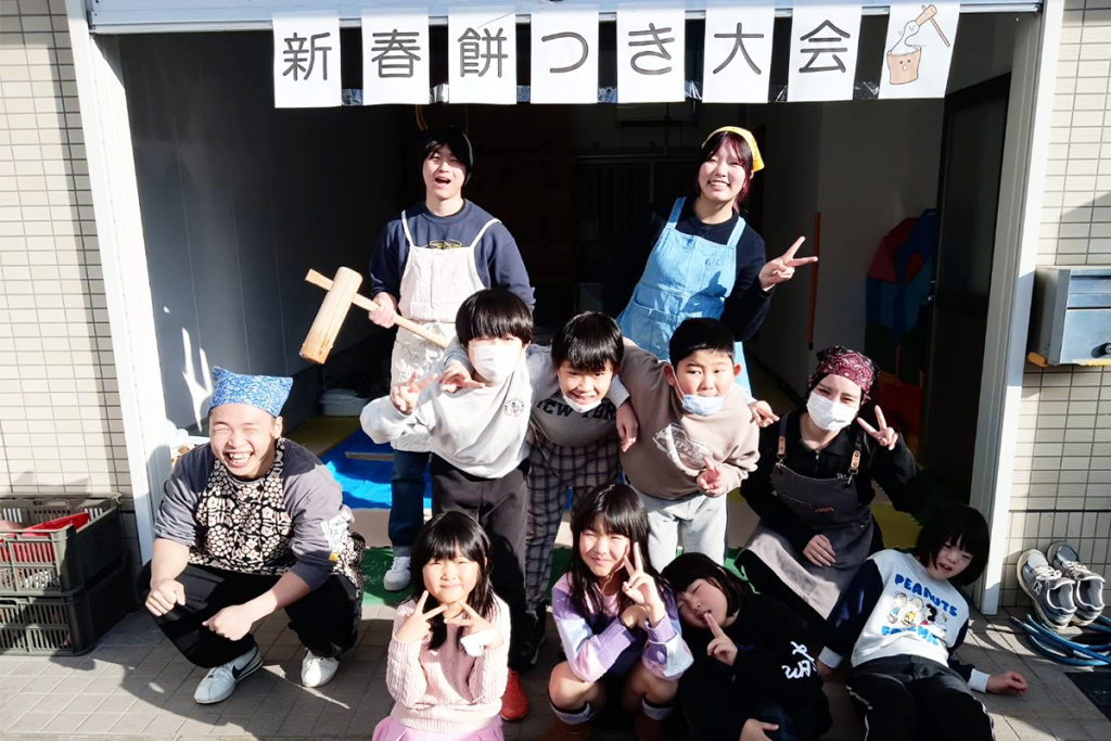 お知らせ2026.01.14 🎍こどもたちと餅つき大会をしました 令和8年1月6日(火)、本学栄養学部の授業「食育実践演習Ⅰ・浦田研究室のゼミ」において、 大阪市にある放課後等デイサービスに通う子どもたちとともに餅つき大会を実施しました。 学生たちは餅つきの準備や進行を担当し、こどもたちと一緒に食の楽しさを体験しました。 また、学生が作成した食育をテーマにした紙芝居も披露され、会場は大いに盛り上がりました。 笑顔あふれる、実践的な学びの機会となりました。 発信部署:栄養学部 « 前の記事へ 次の記事へ »