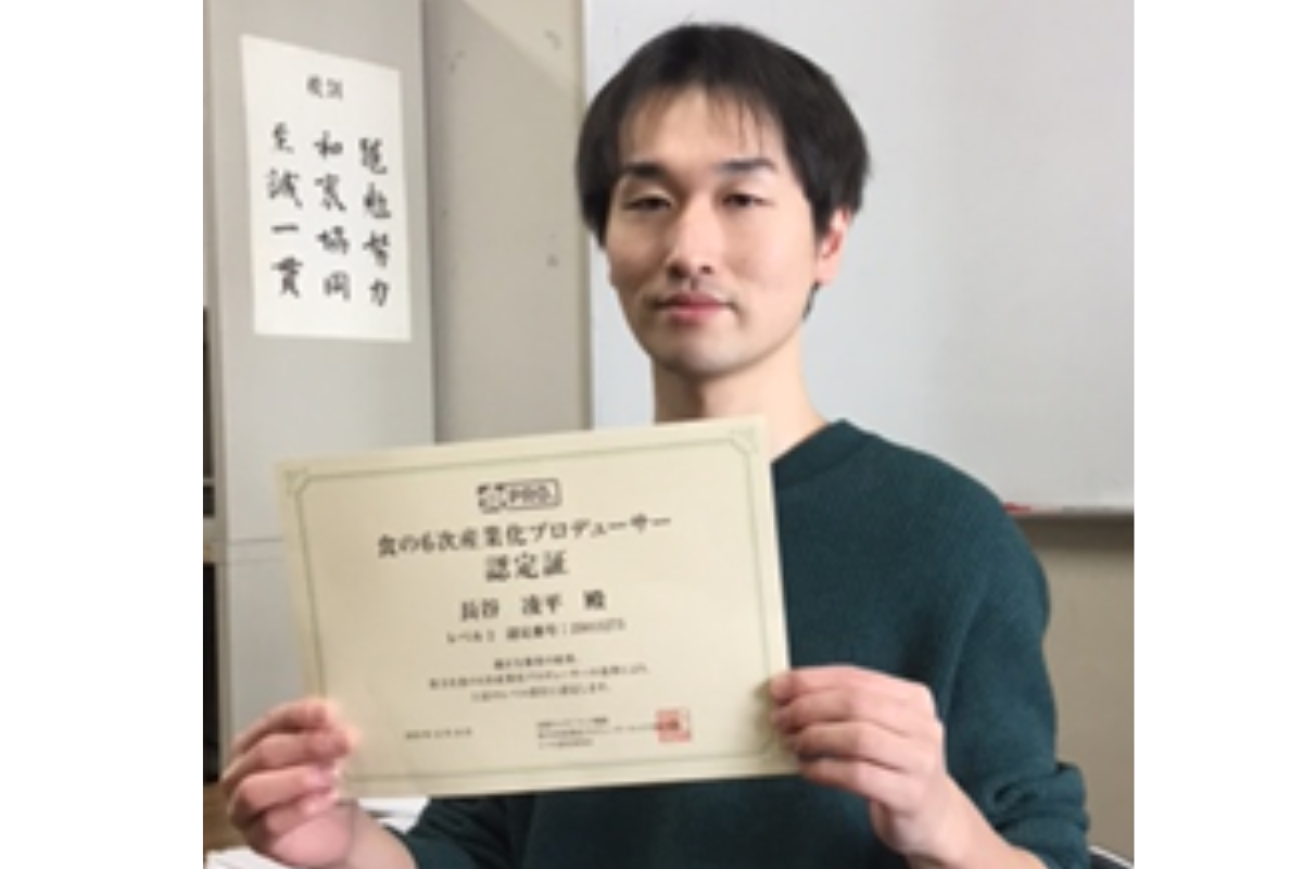 令和6年に卒業された冨安玄さんも同資格を取得し、現在は北海道士別町の地域おこし協力隊として頑張っています。写真を添付します。