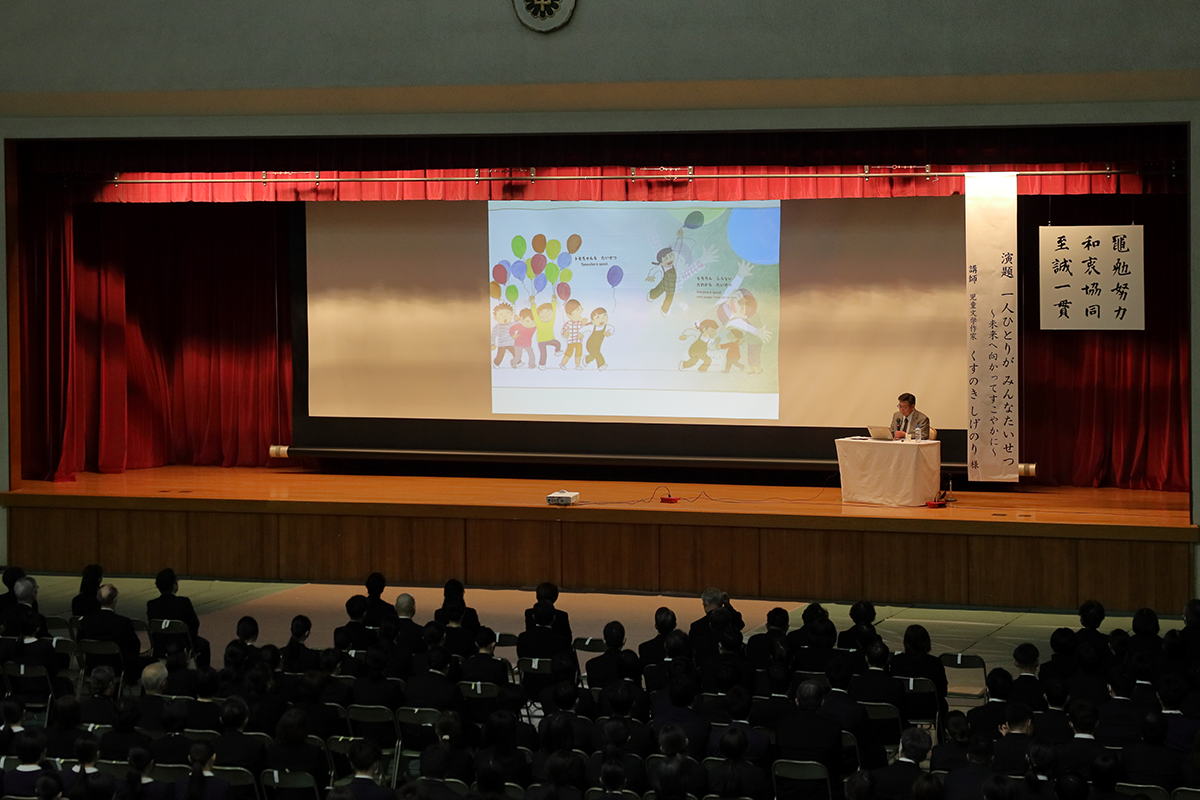 式後、児童文学作家 くすのき しげのり様による「一人ひとりがみんなたいせつ ~未来へ向かってすこやかに~」というテーマの記念講演を拝聴しました。