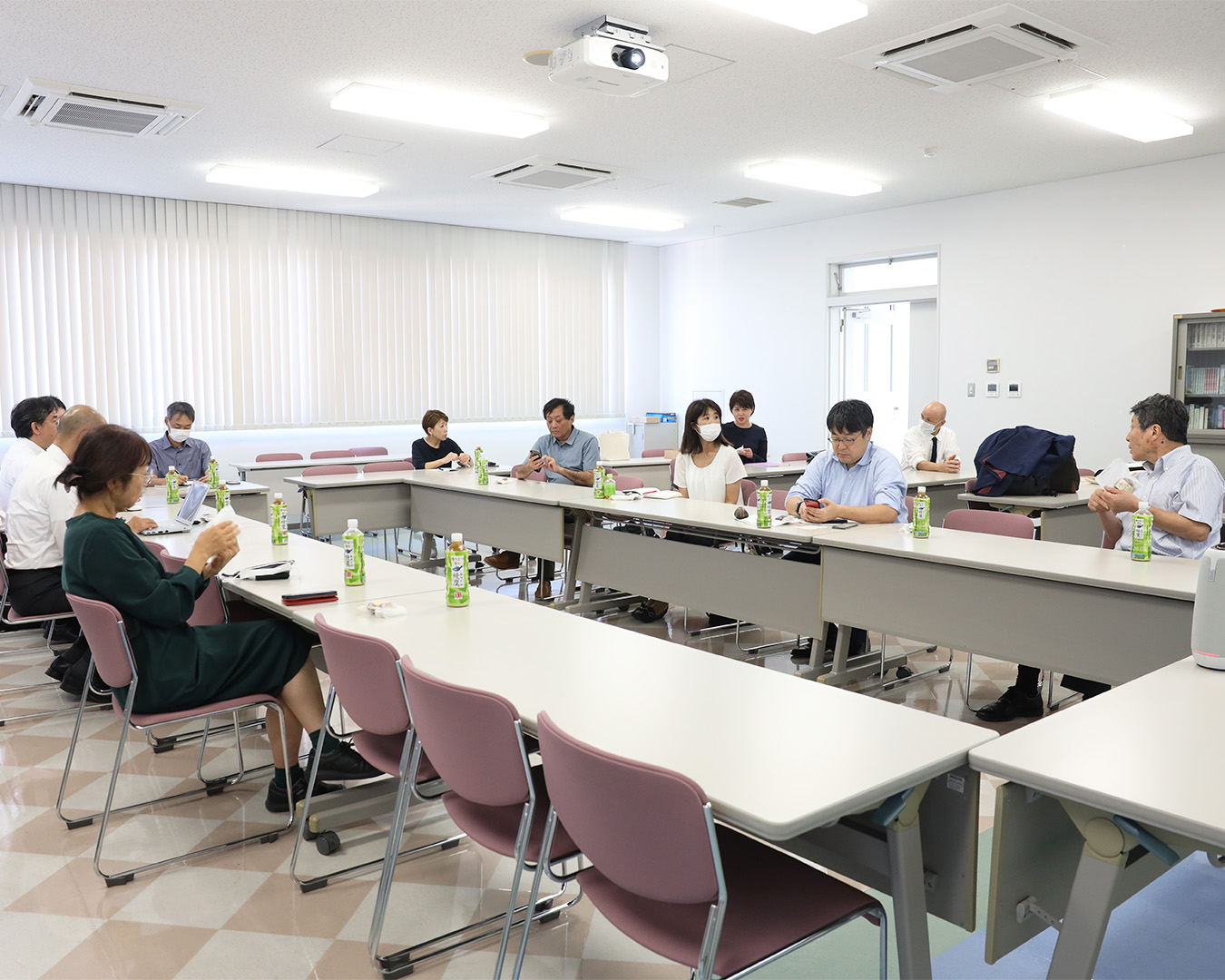 この懇談会は、「甲子園大学の教学資源を研究や社会連携に展開しながら、有識者間のフランクな情報交換や、食品の試作と意見交換、などを介した自由闊達な懇談の場を開設し、嗜好性の高い食品の開発に向けて実践と理論の両面からアプローチすること」を目的として開催されています。甲子園大学にて、対面形式で開催するほか、オンラインで参加された方もおられました。